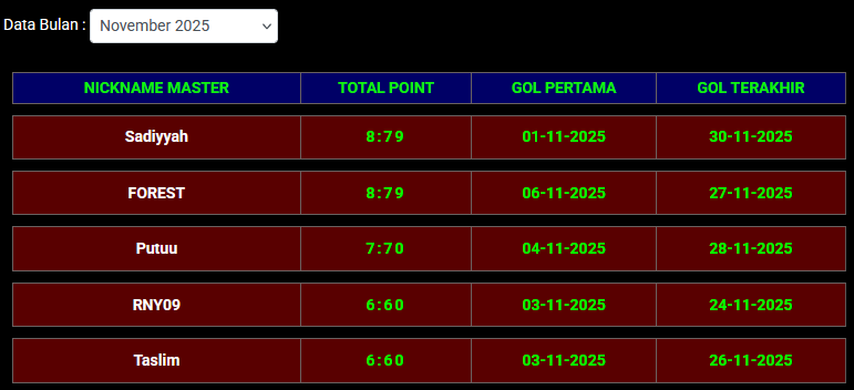 | 32 | kucingjowo | 3:30 | 03-12-2025 | 09-12-2025 |